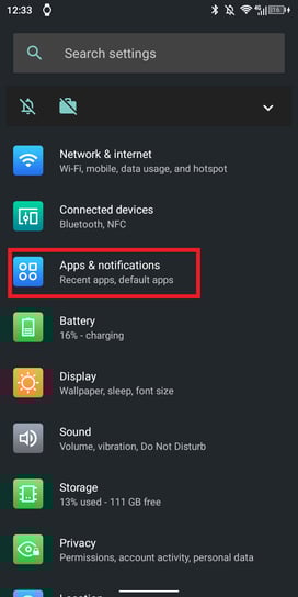 1. System settings -> Apps & Notifications.
