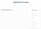 If groups (e.g. based on geography, business unit or other classification) have already been defined for your Drivers, you will need to assign each Driver to a group at the point of invitation by pushing “Assign to Group” and selecting the relevant group from the drop-down list. This is part of the invitation process.