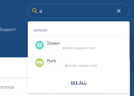 "Search bar": Press here to search the 5Keys Engage Manager Portal for specific drivers. You can search by name or email address.