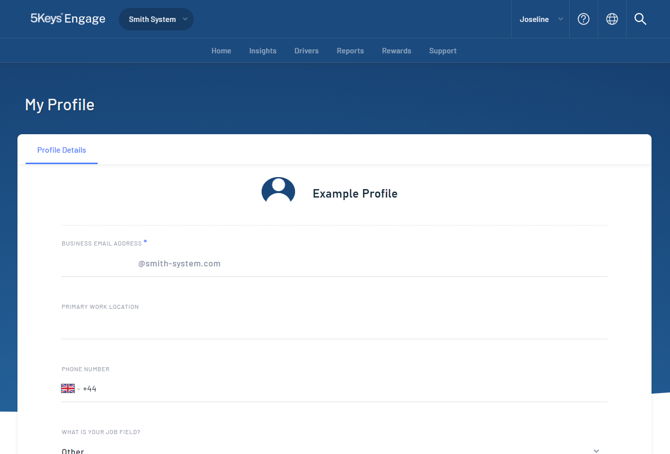 "User Profile": this section allows you to input your user profile details, change your password, select your portal measurement system (miles or kilometres) and sign out from the Manager Portal.