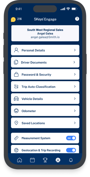 Change the Measurement Unit in the 5Keys Engage Driver app Settings screen