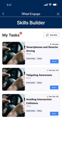 Skills Builder provides e-learning modules directly through the 5Keys Engage App to refresh your knowledge and help you remain safe out on the road.